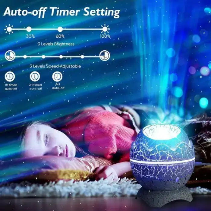✨ কাস্টোমাইজেবল গ্যালাক্সি প্রজেকশন – বিভিন্ন রঙ ও মোডে গ্যালাক্সির আলো প্রজেক্ট হয়।
